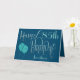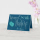 Un design avec des lettres décoratives dans les tons bleus pour les salutations de 85ème anniversaire. Happy Birthday est placé dans un élégant script en bleu, et l'âge est dans un style de coordination en turquoise doux, avec le nom de votre destinataire, sur un arrière - plan bleu. Vous pouvez modifier le message à l'intérieur de votre propre salutation. Les ballons turquoises brillants Faux ajoutent une touche de finition parfaite à l'avant ! Le même arrière - plan bleu se poursuit à l'intérieur.