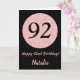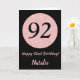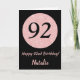Carte Joyeux 92e anniversaire Noir et Rose Rose Or