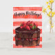 Un délicieux chocolat et un gâteau aux fraises avec des voeux d'anniversaire heureux.