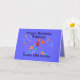 Carte Anniversaire, Jeune garçon. entièrement personnalisable, changer de message, âge, ajouter des noms. Bleu avec jouets et ballons.