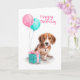 Chien très mignon avec deux ballons de couleur douce et présent, Joyeux anniversaire à mon ami spécial