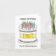 Image simple d'un gâteau d'anniversaire blanc décoré de bougies éclairées et d'un arc jaune attaché autour. Les mots "Joyeux anniversaire à mon pote de pilates" accompagnent l'image.