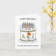 Un simple dessin d'un gâteau d'anniversaire blanc décoré d'une image d'un scientifique fou autour des côtés. L'image est accompagnée des mots "Joyeux anniversaire à un professeur de sciences très spécial".