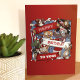 Une carte de voeux avec une ménagerie de caricatures de fans enthousiastes de sports d'animaux agitant leur écharpe rouge et blanc pour célébrer la personne ou l'événement de votre choix. Utilisez "Personnalisez ce modèle" pour modifier le texte "HEUREUX ANNIVERSAIRE POUR VOUS !" dans votre légende préférée. La foule des animaux comprend des chiens, un chat, un lézard, une chauve-souris aux fruits et un lapin. Le papier d'emballage, le papier de tissu, les autocollants et les étiquettes cadeaux sont disponibles dans la boutique NoodleWings.