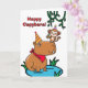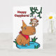 Heureux Capybara ! Carte de voeux d'anniversaire mignonne et drôle avec une illustration d'un capybara et d'un singe. Le singe tient un cupcake et se tient sur le nez du capybara. Un mignon message de jeu de mots capybara écrit à l'intérieur. copyright © Shoaff Ballanger Studios, 2025.