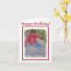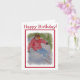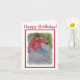 Carte de joyeux anniversaire comportant un descendeur portant une veste rouge, des blues-jean et des lunettes d'or - emballant les pentes de la poudre - une carte impressionnante pour tout amant de sport d'hiver. Le skieur a été peint dans les aquarelles par le concepteur