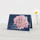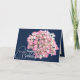 Photo de fond d'une belle grappe de fleurs Lacecap roses et blanches d'Hydrangea contre un arrière - plan de couleur marine. Les fleurs recouvrent l'avant de cette carte qui peut être utilisée comme carte de remerciements, carte d'anniversaire ou toute autre carte de votre choix. Customisez-le avec votre texte et/ou vos images pour en faire un unique !