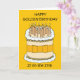 Dessin d'un gâteau d'anniversaire géant en or, recouvert de bougies éclairées et accompagné des mots "Joyeux Jour d'or 27 le 27".