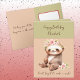 Bonne carte de voeux d'anniversaire. Avec un bébé animal avec des fleurs. Personnalisez avec un message à l'intérieur. Vert, rose et pêche