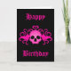 Carte d'anniversaire goth adorable en noir avec un crâne fendu rose chaud avec un cœur sur le dessus et des volutes imprimées sur le devant. Si vous n'aimez pas le texte, il peut être changé très facilement.