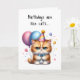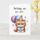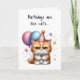 Ajoutez un petit humour pour quelqu'un de spécial avec ce mignon chaton tenant des ballons, portant une cravate arc bleu et casquette de fête sur cette carte d'anniversaire. Les anniversaires sont comme des chats... ils se faufilent sur vous ! Même les GRUMPY !