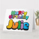 Colorful "Joyeux Anniversaire Julie" bubblegum style texte.