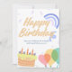 Célébrez un jour spécial avec cette carte de Joyeux Anniversaire magnifiquement conçue, présentant des illustrations pastel d'un gâteau d'anniversaire, de ballons et un message joyeux. La palette de couleurs douces et la typographie moderne la rendent parfaite pour envoyer des vœux d'anniversaire chaleureux à vos amis, votre famille ou vos collègues. Personnalisez-la avec votre propre message à l'intérieur pour un geste sincère.