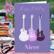 Que votre nièce soit guitariste avec une compétence exceptionnelle ou guitariste de l'air, c'est la carte pour elle. des illustrations de style pop art cool de trois guitares semi-acoustiques dans des tons légèrement translucides de blanc, rose et violet. Les mots "happy anniversaire niece" peuvent être customisés en utilisant le modèle pour créer une carte personnalisée pour votre nièce amoureuse de la musique lors de sa Journée spéciale. Oeuvre originale créée par l'artiste Catherine Sweetman