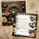 Jolie carte d'anniversaire gothique victorienne steampunk modèle photo Happy Anniversary. Belles fleurs de corail, or, argent et cuivre métal engrenages. L'arrière a trois espaces pour les images en forme de coeur. Vous pouvez également modifier le texte dans la zone de personnalisation.