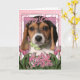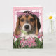 Carte Joyeux anniversaire - Tulipes roses - Chiot Beagle