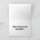 Cette belle photo d'un cheval debout près d'une porte est présentée sur cette carte de voeux d'anniversaire. Le recto de la carte contient le message "Encore une fois, il est temps de...", tandis qu'à l'intérieur le message dit : "Saddle-up et profitez de votre journée. Joyeux anniversaire" !