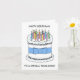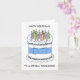 Illustration simple d'un gâteau d'anniversaire blanc glacé avec un arc bleu attaché autour et plusieurs bougies éclairées sur le dessus. Les mots "Joyeux anniversaire à un guide touristique spécial" accompagnent l'image qui a un arrière - plan blanc.