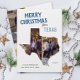 Vous êtes fier d'être un Texan alors envoyez une fierté d'état léger cette saison de vacances avec cette deux photo joyeuse carte de vacances avec texturé en bleu foncé et clair et accentué avec des flocons de neige. Personnalisez avec votre propre message de soutien, emplacement, année, votre nom de famille texte et deux de vos photos préférées. Pour ajuster vos photos pour une meilleure position dans la forme texane, utilisez le lien "personnaliser plus loin", sélectionnez la photo dans les calques et utilisez l'outil Découper pour rogner vos images pour les adapter. Ajoutez deux photos de portrait supplémentaires et personnalisez le texte sur le dos pour votre propre mini-lettre de brag et déplacer faire-part enveloppé dans un seul et laissez vos amis et votre famille connaître votre nouvelle adresse.