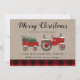 Rustic Joyeux Noël Rouge Plaid Carte de vacances - Souhaitez à votre famille et à vos amis un Joyeux Noël cette saison de vacances avec une touche de rustique, style ferme. Notre carte de Noël de pays unique comprend un tracteur vintage de ferme portant un arbre de Noël frais de la ferme et un cadeau emballé pour les vacances. (Tout le texte est modifiable). Joyeux Noël est dans une jolie police de caractères. La carte est personnalisée avec votre nom de famille et le nom du membre de votre famille. La carte fait partie d'une collection. Montré avec Kraft arrière - plan. La carte est également adaptée aux affaires.