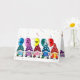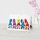 Carte d'anniversaire de gnome amusant et fantasque. Les nomes ont des cadeaux, des gâteaux et des ballons.