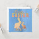 Une belle carte bleue aux silhouettes oranges de lapins en pointillés. Très moderne, couleurs printanières, nom de destinataire personnalisable, souhaitez une Pâques heureuse à vos proches!