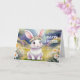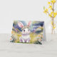 Petit lapin doux avec la couronne de marguerites jouissaient d'une belle journée sur l'herbe.