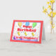 Trois petits poulets sur des gâteaux d'anniversaire tenant des ballons sur une carte d'anniversaire pour des triplés. Mon verset intérieur est personnalisable.