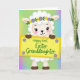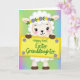 This card features a stylized lamb-like character with fluffy white fleece, rounded shapes, dark expressive eyes, rosy cheeks, and a small smile that feels like it’s meant for someone close. A floral crown of yellow and soft purple blossoms with green leaves rests on its head, adding a gentle, affectionate touch 🌷. Behind it, the background fades vertically from spring green into light lavender and then sky blue, creating a calm, airy setting. The character stands upright with tiny dark hooves showing and holds a bright yellow rectangular banner across its body, as if presenting it to a dear friend or loved one 🐰. The banner has a scalloped edge and a couple of small purple flower accents that echo the crown. Centered on the banner is a short holiday message in green lettering, placed to read clearly against the yellow, with the words filling most of the sign. Soft, even lighting keeps the fleece bright and the pastel gradient smooth, while the yellow banner stays the strongest color on the page. The scalloped border and the small purple blossoms sit along the banner’s edges, with the green text centered across the middle.