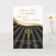 Célébrez un jubilé d'or avec un prêtre. Cette cinquantième carte d'anniversaire de classification comporte une ligne numériquement rendue de croix et de vague de l'or 3D entre les rayons de noir sur le message inférieur et principal sur le blanc. Personnalisez les cartes avec le nom du prêtre.