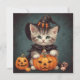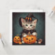 Carte Kitten en costume d'Halloween et Jack-O'Lantern