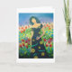 Une femme tenant un oiseau coloré se dresse au milieu d'une mer de fleurs. Ier paisible, âge