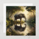 Carte éléphante. Une illustration assez sereine d'un éléphant debout dans la forêt qui se réfléchit dans l'eau. Une oeuvre d'art calme et tranquille pour vous aider à vous détendre.