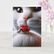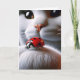 Un gros plan du visage d'un chat montre son regard curieux sur une coccinelle rouge vif perchée sur sa patte blanche et moelleuse. Le texte intérieur peut être modifié.