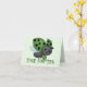 Jolie coccinelle aux ailes vertes buvant du thé. Le texte est personnalisable.