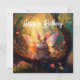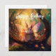 Un lapin fantaisiste aux ailes de fées colorées se trouve sur une branche dans une forêt enchantée, entouré de lumière brillante et de feuilles en chute. L'atmosphère magique et vibrante vous plonge dans une aventure fantastique. Joyeux anniversaire dans le texte décoratif fleur sauvage