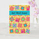 Envoyez cette carte gaie "obtiennent puits bientôt" à un amant de quilter ou d'édredon avec cette carte de voeux entièrement personnalisable colorée. Vous pouvez changer les mots sur l'avant en personnaliser pour ajouter vos propres mots et noms. Les mots de sentiment à l'intérieur de la carte peuvent également être customisés à vos propres mots. Cet art original d'édredon fait une carte de voeux vibrante de note ou de couleur. L'art d'édredon basé sur l'art original comporte les blocs préférés d'édredon de patchwork tels qu'un cabine de rondin, un soleil, et une étoile plus les blocs uniques dans des couleurs vibrantes et dynamiques d'orange, de jaune, de rose, turquoise, et vert de chaux sur un arrière - plan jaune chaud et coloré pour une belle palette de couleurs. Une rayure bleue turquoise de turquoise est sur l'avant de la carte à dire que "obtenez le puits bientôt" ou toute autre salutation de votre choix. Cet art d'édredon est art original de concepteur Phyllis Dobbs de tissu et d'édredon. Cet art est disponible sur d'autres produits et à plusieurs arrière-plans de couleur dans ce magasin avec plus de produits disponibles dans le magasin de BusinesswithFlair de Phyllis. Match avec les timbres, les enveloppes, les autocollants et les étiquettes de adresse coordonnés de retour.