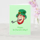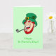 Parfait pour la Saint Patrick ! Un leprechaun riant avec barbe de gingembre, pipe d'argile, et shamrock dans son hameau. Verset intérieur dit : Un Joyeux Saint Patrick pour vous, et tous les gens qui vous tiennent à coeur. Puisse le shamrock tenir droite et vrai et sourire pour une autre année