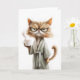 Un chat de dessin humoristique grincheux se tient en robe tenant une tasse de café vapeur, clairement pas un ventilateur du matin. Sa fourrure désordonnée, son éblouissement intense et son ambiance générale "ne me parlez pas encore" en font un parfait état d’esprit visuel pour quiconque avant la caféine.