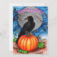 Tableau original de Sandra Gale pour la saison d'Halloween avec un corbeau noir perché sur un citrouille. Un design idéal pour les enfants et les adultes pour célébrer la fête éffrayante d'Halloween.