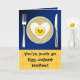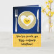 Tu vas chercher Egg-cellent Mother ! This cute kawaii over-easy egg in the shape of a heart with a smile face is an adorable mother's day card for a mama friend or associate. Blue and yellow with plate, knife and fork.