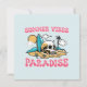 Cette carte de voeux présente un crâne dans le sable et l'expression "Summer Vibes Paradise". Il est idéal pour capturer le style surfer, les vibrations de plage et les aventures d'été.