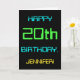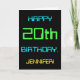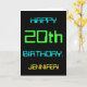 Ce design simple et amusant de carte de voeux d'anniversaire comporte un message comme "HAPPY 20th BANTHDAY, JENNIFER!". Il présente également une apparence amusante inspirée de l'informatique numérique. Le nom à l'avant et le message à l'intérieur peuvent être customisés. Il pourrait être envoyé ou donné à quelqu'un qui célèbre son vingtième anniversaire, et qui travaille peut-être comme programmeur informatique, développeur logiciel, administrateur de base de données, administrateur réseau, ingénieur électronique, ou qui aime utiliser des ordinateurs. [~Z0000100]