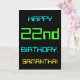 Ce design simple et amusant de carte de voeux d'anniversaire comporte un message comme "HAPPY 22nd BANTHDAY, SAMANTHA!". Il présente également un look amusant inspiré de l'informatique numérique. Le nom à l'avant et le message à l'intérieur peuvent être personnalisés. Il pourrait être envoyé ou donné à quelqu'un qui célèbre son vingt-deuxième anniversaire et qui travaille (ou a travaillé avant la retraite) comme administrateur de base de données, programmeur informatique, administrateur réseau, développeur logiciel, ingénieur électrique ou qui aime utiliser des ordinateurs. [~Z0000100]
