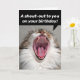 Un chat à la bouche large criant : "Un cri à vous pour votre anniversaire !" L'intérieur dit en gros caractères gras, "Je crie parce que vous ne pouvez pas m'entendre !" En petit type, il dit : "Vous êtes les bienvenus. Joyeux anniversaire !" Carte humoristique pour les personnes âgées qui sont trop têtues pour obtenir des appareils auditifs. Nous les connaissons tous. : D