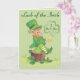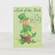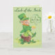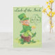 Une carte irlandaise amusante ou une invitation présente un Leprechaun assis sur un moignon avec des Shamrocks à ses pieds et des pièces d'or entre ses mains. La carte intérieure a des zones de couleur et de texte correspondant prêtes à vous customiser. Carte avant dit La chance de l'irlandais à vous & à votre.