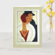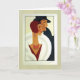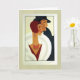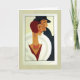 Une femme dans un casquette rouge de cloche, une robe rouge, une étole de fourrure blanche, et de beaux bijoux fleuris, poses avec son compagnon beau de monsieur s'est habillée dans le casquette de chapeau mou et le pardessus, font un couple élégant dans cette illustration signée d'art déco des années 1920. Un cadeau et des évènements mémorables parfaits pour l'amant de l'art vintage ! (Inconnu d'artiste).