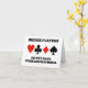 Si vous jouez au bridge, alors vous savez que 13 est un numéro de clé dans le jeu car il représente le nombre de cartes dans un costume. Les possibilités de prise de pieds dans le jeu de pont tous tournent autour du numéro 13. Laissez votre côté d'attitude de pont ciré briller avec cette carte de voeux avec les quatre costumes de carte avec le dicton "Les joueurs de pont n'ont pas Triskaidekaphobia". Triskaidekaphobia est la peur du numéro 13, que les joueurs de pont n'ont certainement pas.