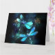 Deux libellules transparentes, lumineuses, turquoise, artistiquement dessinées sur l'arrière - plan de nuit avec des algues luminescentes et des lucioles. libellule éclatante.