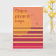 L'intérieur de la carte dit, "Je sais que la vie est un défi en ce moment, mais ne perdez pas espoir. Les choses vont s'améliorer, je le promets. N'abandonne pas ! Je t'aime." La couverture comprend la peinture numérique "Horizon", qui peut être achetée à l'adresse http://www.zazzle.com/reasontolive*/product/228026802234150845.